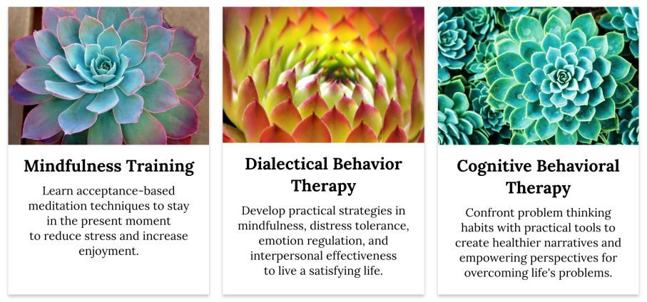 Behavioral Therapy, Dialectical Behavior Therapy, and relationship coaching) to help you overcome life's most challenging moments and transitions.